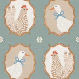 Pre-Order Framed Hens And Ducks Green – Cute Farmyard Bird Portraits