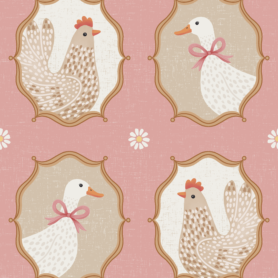 Pre-Order Framed Hens And Ducks Pink – Cute Farmyard Bird Portraits