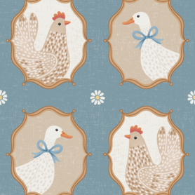 Pre-Order Framed Hens And Ducks Blue – Cute Farmyard Bird Portraits