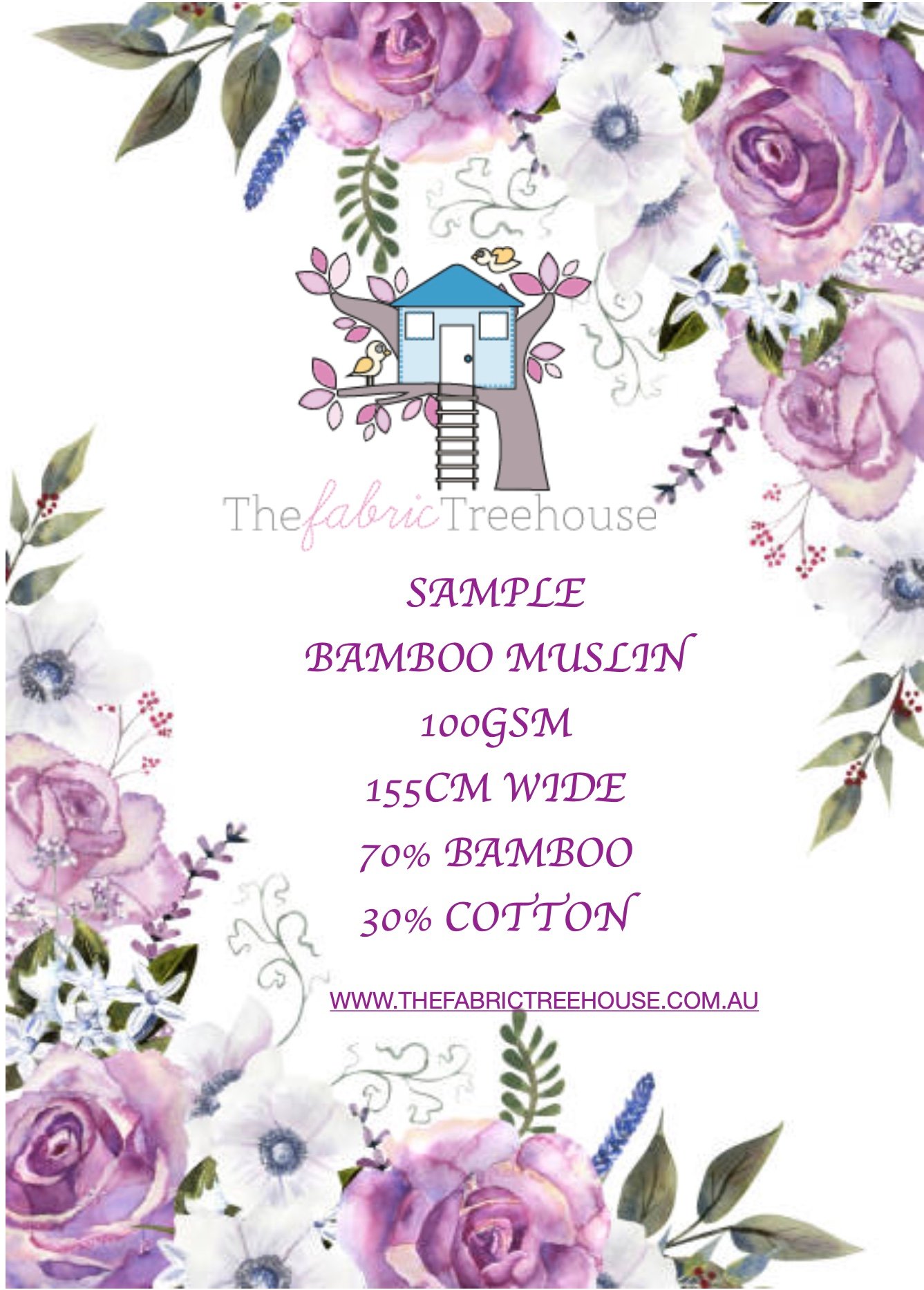 - Bamboo Muslin – 70% Bamboo 30% Cotton Width 132cm 52″